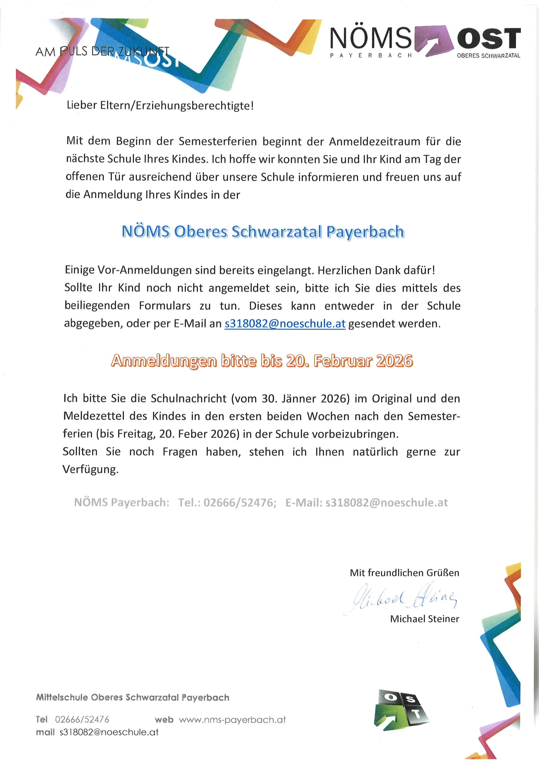 Anmeldung für das Schuljahr 2026/2027Liebe Eltern! Am Freitag, 30. Jänner 2026, können Sie uns bis 15:00 Uhr in der Schule erreichen. Wir freuen uns auf die Anmeldung Ihres Kindes für unsere Schule. nadine2026-01-25T16:23:53+01:00